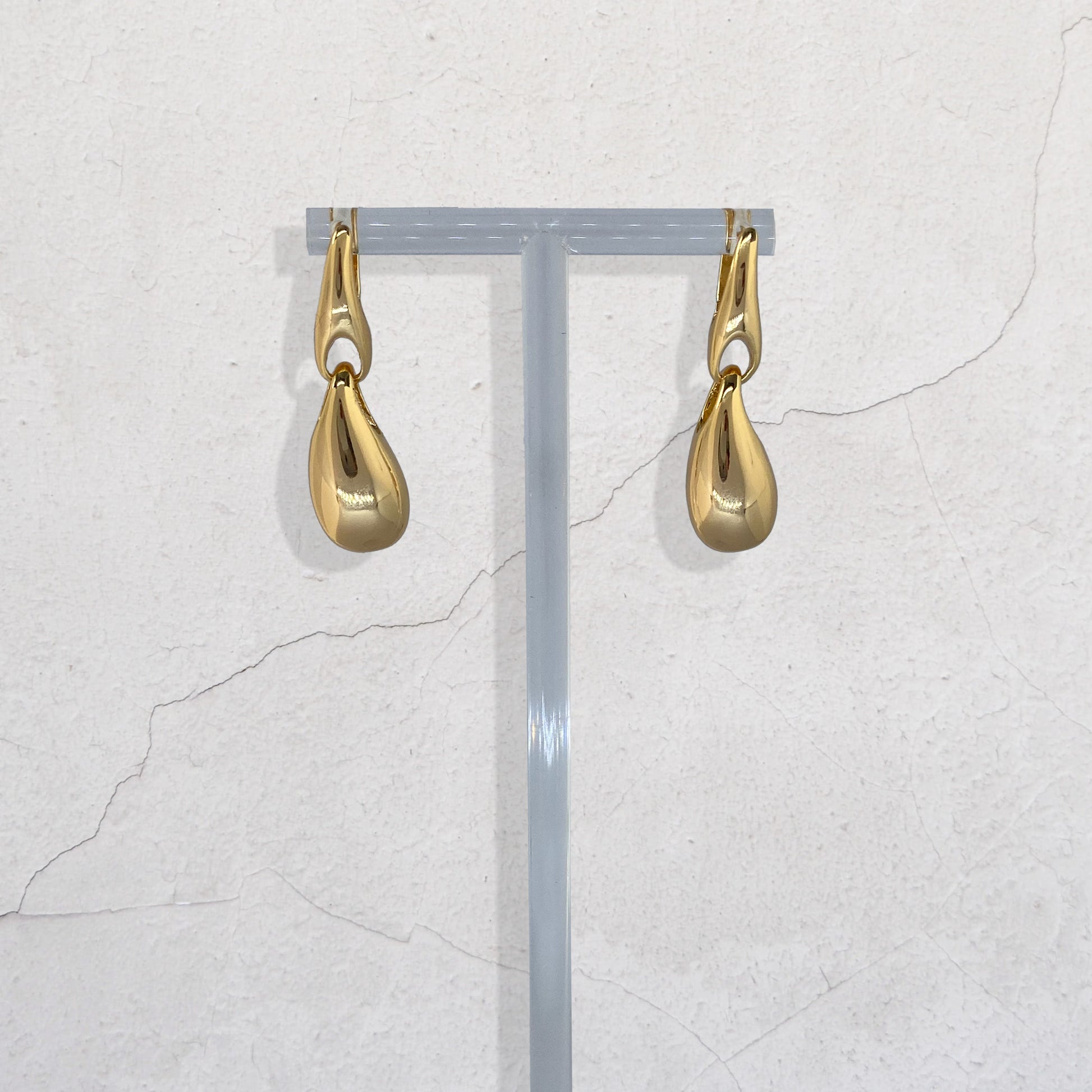 Featuring two gold-tone teardrop links that flow seamlessly together, these earrings have a liquid-metal feel that reflects light beautifully. Their minimalist yet statement-making design makes them versatile enough to pair with both everyday outfits and elevated evening wear.