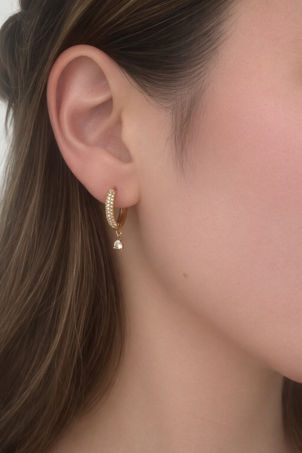 CZ paved hoop with heart CZ